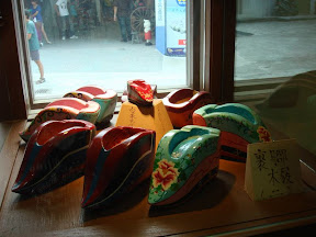 午餐後驅車去接今早脫隊才到的情侶檔,然後我們到了社區營造名氣頗大的白米木屐村。木屐村有一間會館,總共三層樓高,最上層是社區圖書館和咖啡座(也當作簡報室使用),第二層有木屐的各階段的手工師父現場獻藝,一樓則是提供給遊客們購買木屐的展示場。會場採取人員管制,必須先登記之後,再在門口排隊,還好排隊時間沒有耗費太久。進去後首先我們就先到三樓去看木屐村的簡介,簡介完就立即下樓開始導覽,害我毫無空檔去欣賞一下旁邊一角的社區圖書館。導覽的途中有有獎徵答的設置,所以大家都很認真地聽介紹,同行的同事也很幸運地拿到一項獎品。