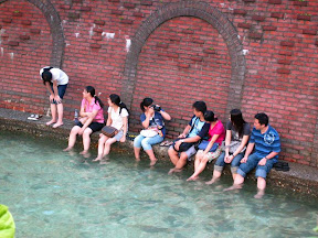 等到遲到一個小時的另兩台車都吃完肉羹、逛完林場後,我們前往蘭雨節的會場之一:武荖坑。武荖坑裡緊鄰著一條溪,有很多玩水的設施,也有一些文化館之類的地方可以參觀,兩對主管夫妻檔在門口跟我們「青年軍」約好了集合時間,大家就各自去玩了~